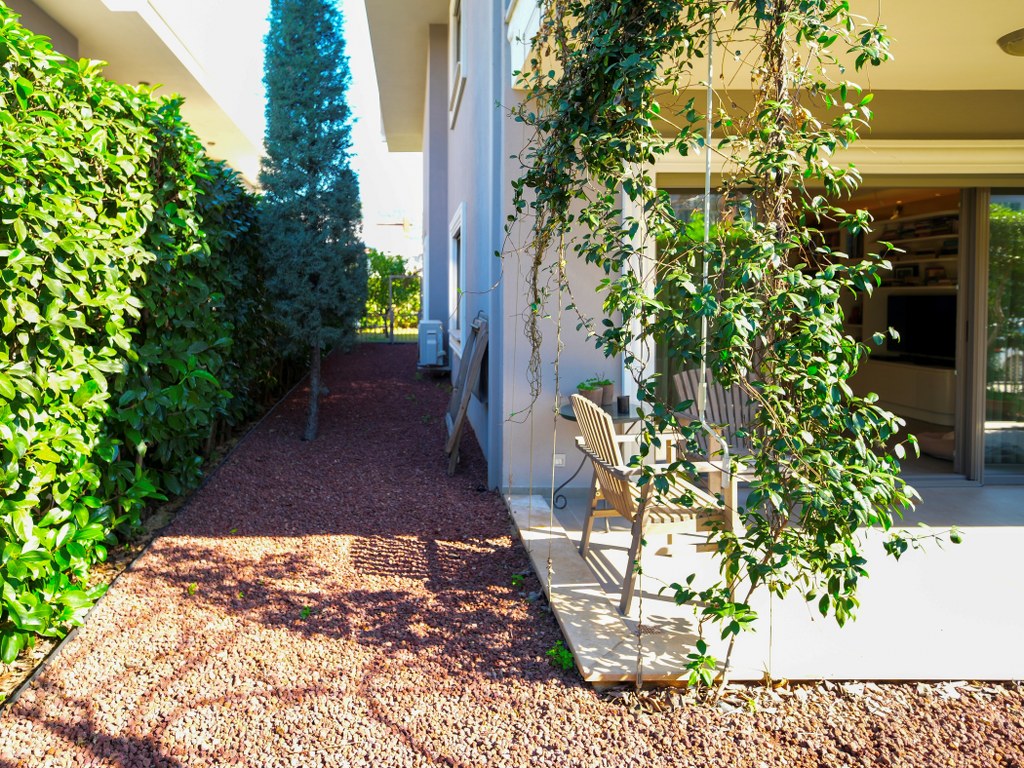 * Özel jüt ve ponza taş kaplamalı, içerisinde zeytin, hurma, çam ağaçlarının ve yasemin sarmaşık bulunan müstakil bahçe kullanımı.